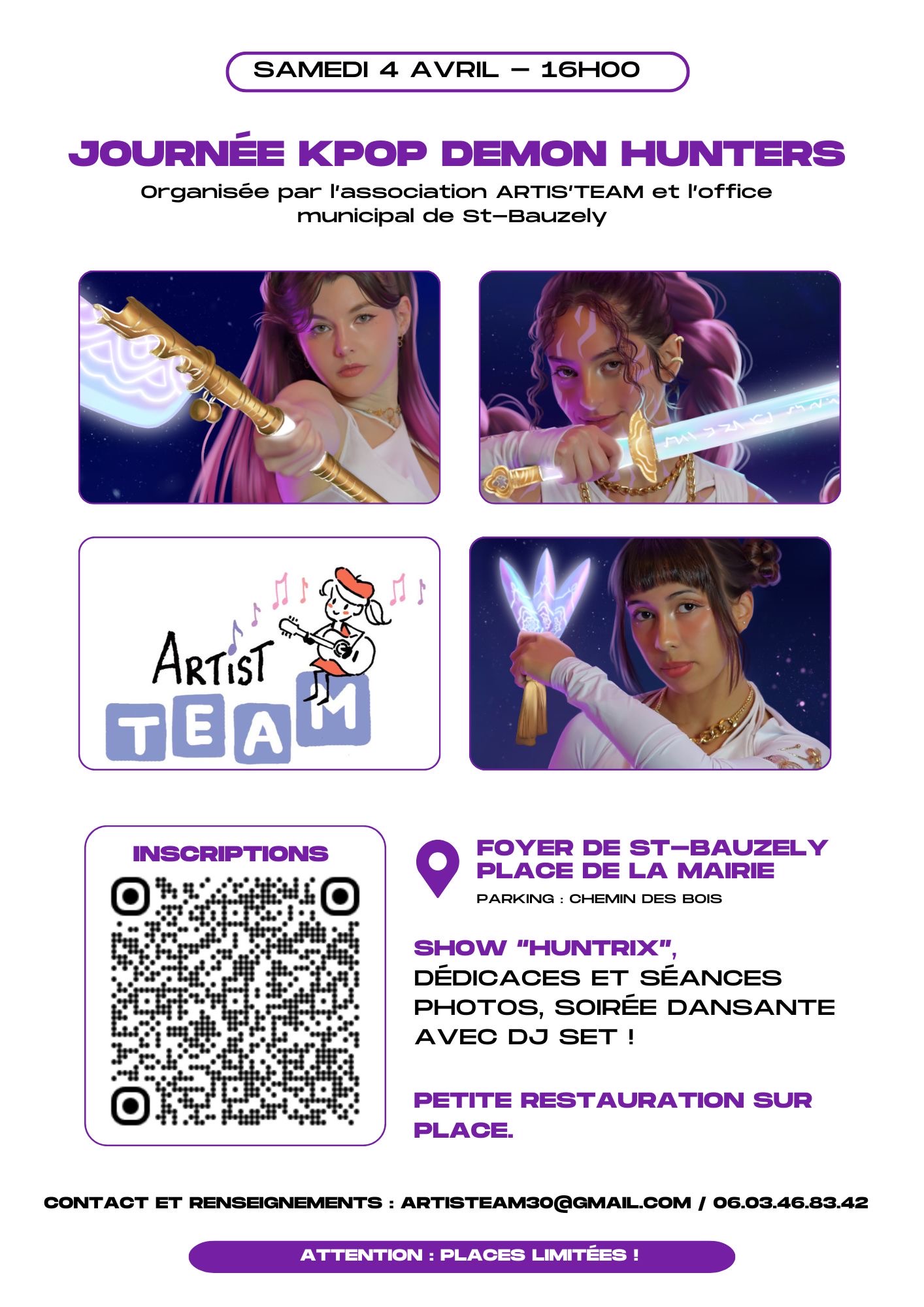 Prochains Évènements Journée KPOP DEMON HUNTERS – SAMEDI 4 AVRIL 16 H « Tous les Évènements 4 avril à 16 h 00 - 18 h 00 Détails Date : 4 avril Heure : 16 h 00 - 18 h 00 Organisateur ARTISTEAM Lieu Foyer municipal Saint Bauzély, 30730 France + Google Agenda+ Exporter vers iCal
