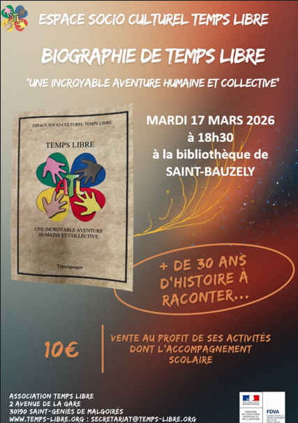 Mardi 17 mars à 18h30 à la bibliothèque – présentation de la biographie de l’association temps libre